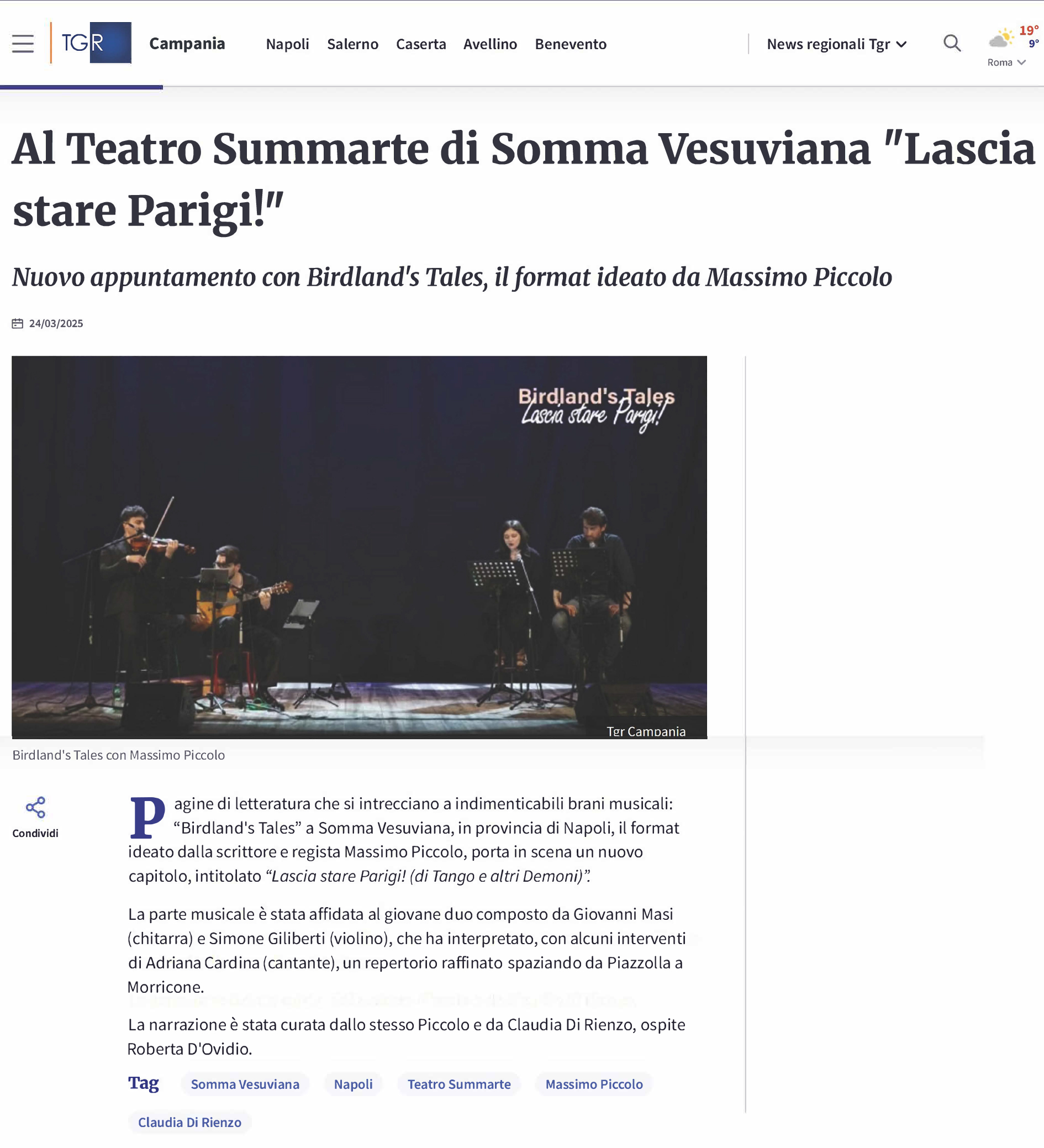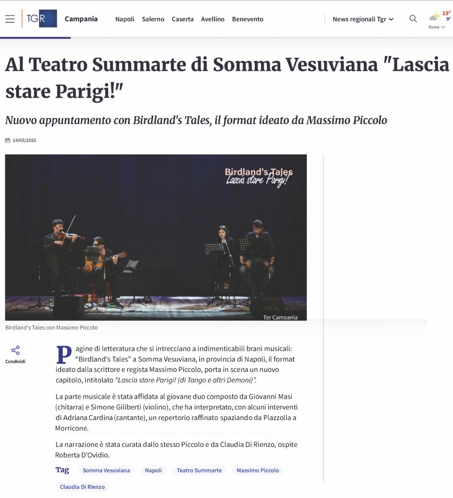 Torna a teatro – con un evento speciale Lascia stare Parigi! (di Tango e altri Demoni), lo spettacolo di narrazione Birdland’s Tales di Massimo Piccolo.