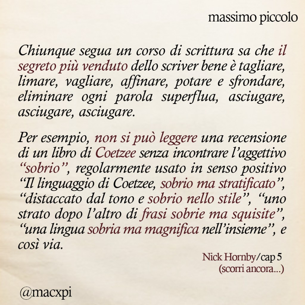 Tra gli autori protagonisti di questo capitolo troviamo, Pessoa, Fitzgerald, McBride, Richard Ford e Baricco, sempre “indissolubilmente intrecciati” alle musiche, questa volta, di Astor Piazzola, Ennio Morricone e Ryūichi Sakamoto.